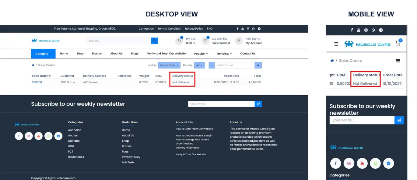 Under Last Delivery Orders in the right section, the status of your order is displayed: